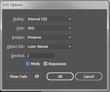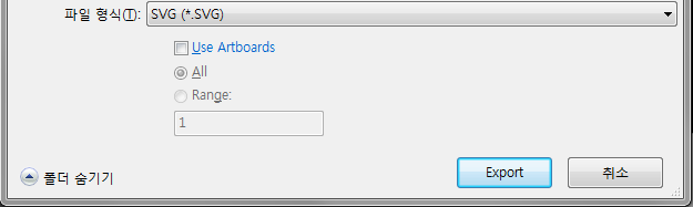 2. 파일 이름을 작성하고, 파일 형식을 SVG로 설정 => Export 클릭