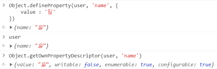 writable 플래그를 "true"로 변경하지 않으면 객체의 값은 변경할 수 없다.