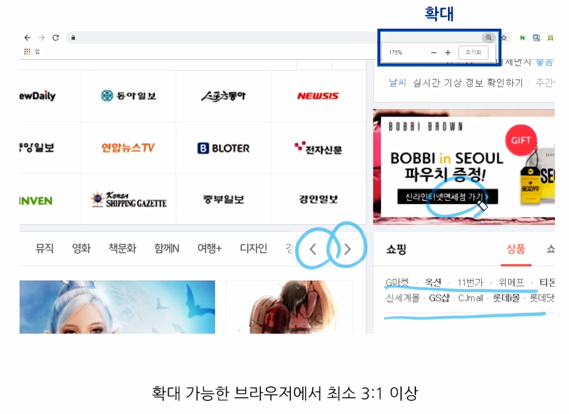 확대가 가능한 브라우저에서는 최소 3:1 이상이면 준수입니다.