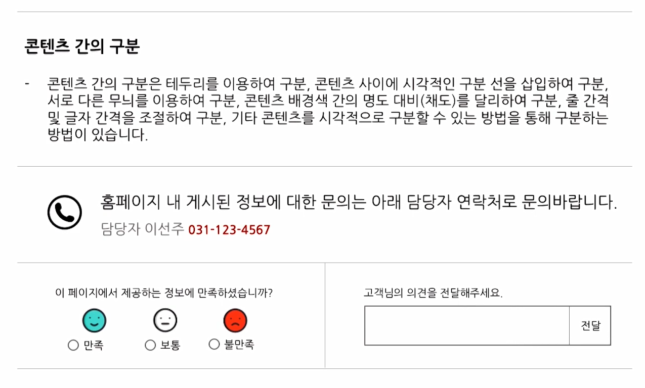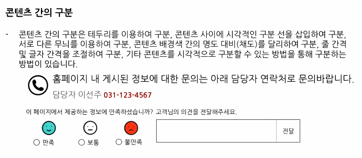 | [접근성] 1. 인식성 - 05. 텍스트 콘텐츠의 명도 대비 (0) | 2021.11.14 |
