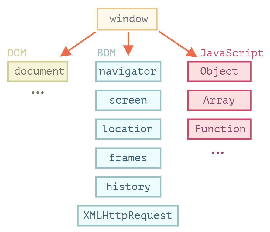 | BOM(브라우저 객체 모델) | 웹 브라우저의 주소 표시줄이나 창 크기 등 웹 브라우저 정보를 객체로 다루는 것 |